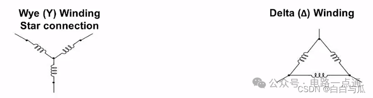 Delta型绕组电机在低速时提供低扭矩(Lower torque at low speed),但可以提供更高的最高速度(Higher top speed);Y型绕组在低速时可提供高扭矩(Higher torque at low speed),但最高速度不高(Lower top speed)。Delta型绕组结构允许含有奇次谐波电流在电机内循环,而Y型绕组并不包含寄生电流可流动的闭环结构(Immune to parasitic currents),从而防止额外损耗,故Y型绕组效率更高。除了Y型绕组较高阻抗外,从控制器的角度来看,不管是Y型还是Delta型连接,电机的驱动方式都是一样的。